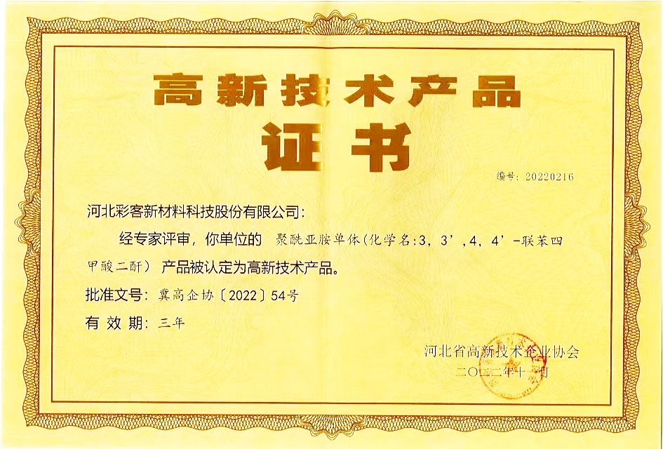 BPDA主要用于特種材料聚酰亞胺的生產(chǎn),聚酰亞胺具有突出的耐溫性能和優(yōu)異的機(jī)械性能,是目前已知耐熱性能最好的可實(shí)際大規(guī)模使用的聚合物材料,廣泛應(yīng)用于航空航天、電氣絕緣、柔性顯示、新能源、微電子等新興領(lǐng)域。